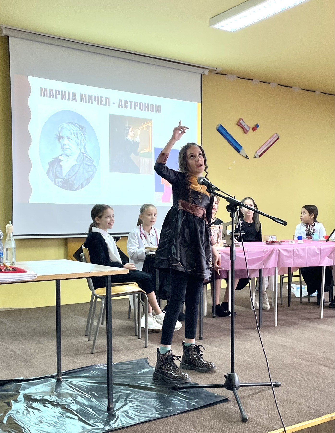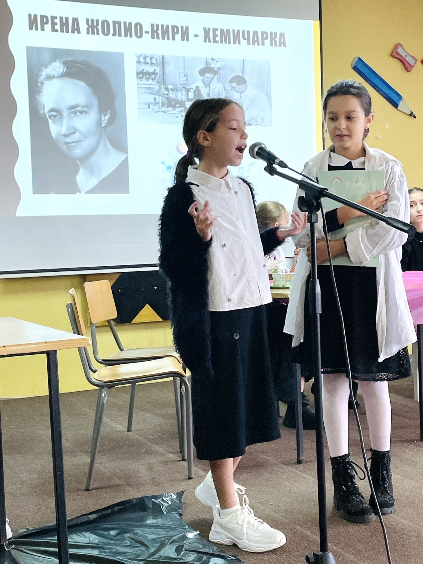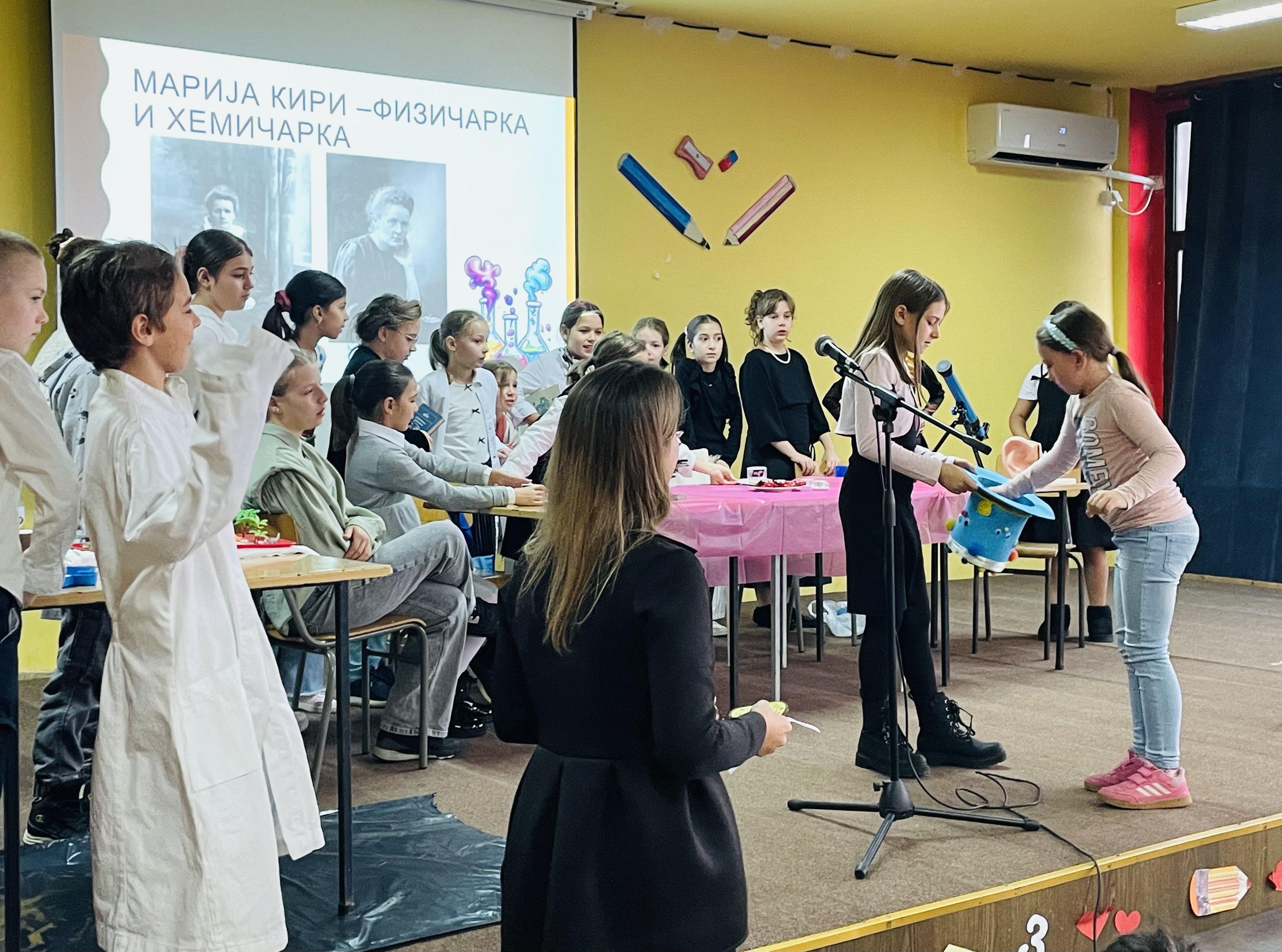 Ученици старијих разреда школе говорили су млађим другарима о свему што су научили на часовима биологије, географије, техничког, физике и хемије, и изводили огледе којима су под будним оком својих наставника презентовали научено. Да је вршњачка едукација добро прихваћена сведочила су заинтересована лица другара и узвици изненађења приликом извођења огледа. Посебну захвалност дугујемо најмлађим ученицама, које су се за тај дан преобукле у костиме најважнијих научница, и представиле се ученицима првог и другог разреда.
