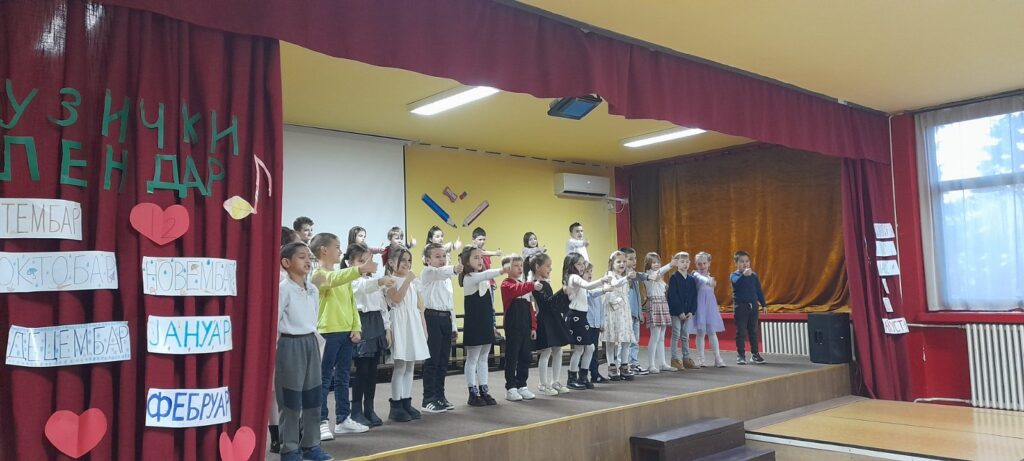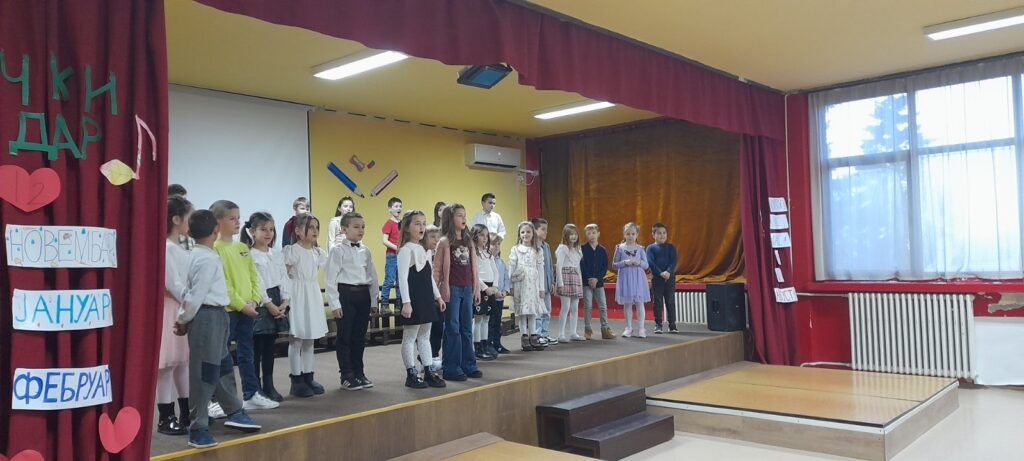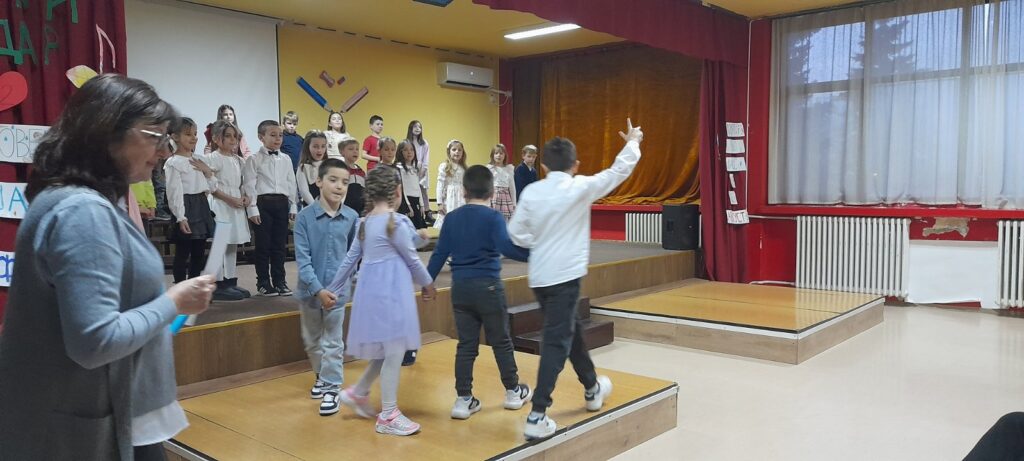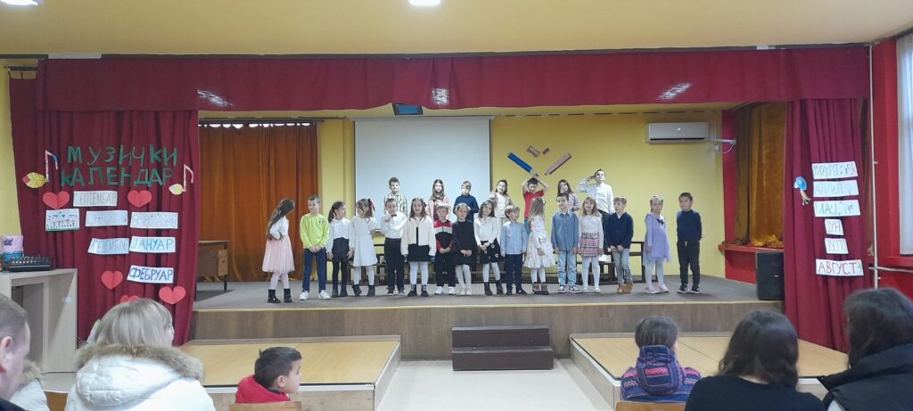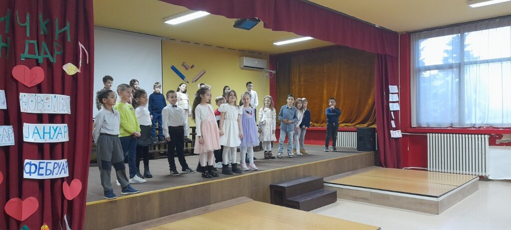12.2.2026. за породице ученика 1/2 одељења. Наши малци су извођење научених песама обогатили различитом кореографијом и ритмом, али пре свега радошћу и ентузијазмом. Било је лепо видети и задовољство и понос многобројне публике коју су чинили сви они који највише воле ове наше мале прваке.