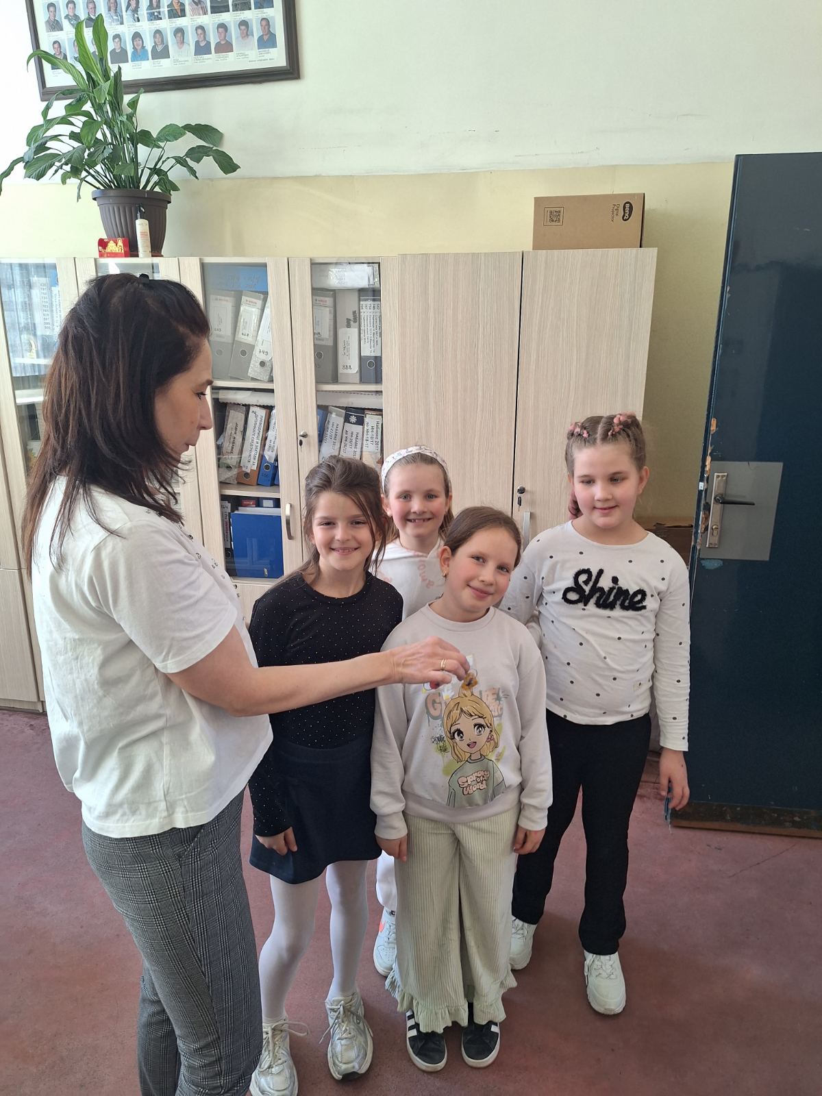Осми март у школи прославили смо тако што смо обрадовали све запослене, а нарочито смо изненадили нашу правницу Милу.